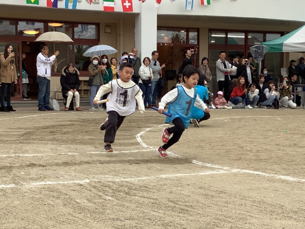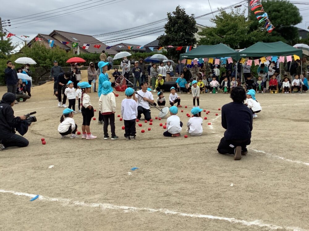 当日は予報通り雨が降り始めそうな空模様で、なんとか以上児クラスの子ども達の競技だけでも行えるように時間を早めて進行しました。しかし、どんよりのお天気に負けない気持ちで、ぱせり組さんもれたす組さんもせろり組さんも各競技を元気いっぱい盛り上げてくれたおかげで雨雲さんがしばし足止め?子ども達の競技の他に小学生競技や職員vs保護者競技も行うことができました👏